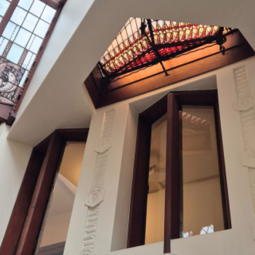 Een iconisch gebouw waarin rijke details en ambacht het interieur tot leven brengen. Een must-see voor wie zich laat inspireren door de expressieve kracht van materialen en vormen.